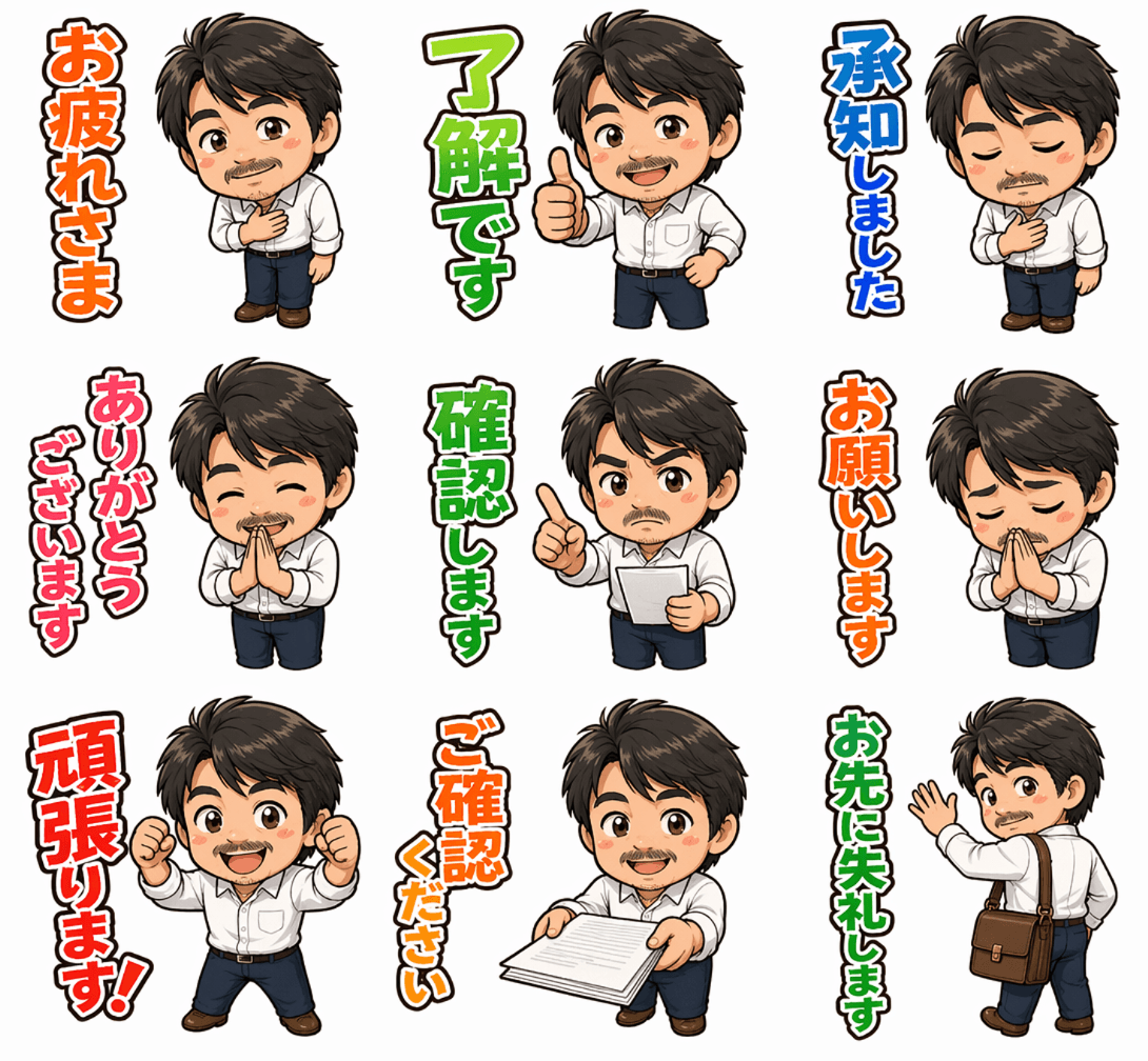 AIによるスタンプ生成は数分で完了します。LINE公式の審査は数時間〜約2日で完了します(LINE公式ヘルプセンター・2026年4月時点)。繁忙期や修正対応が必要な場合はさらにかかることがあります。